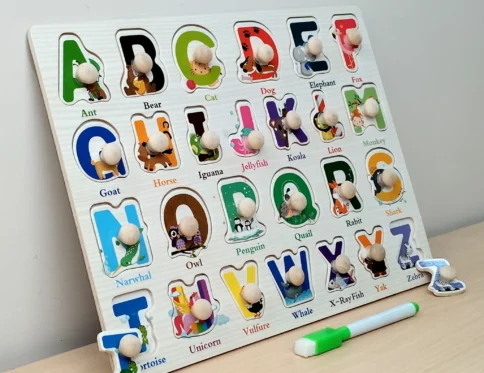 Premium Wooden Learning Knob Alphabet Puzzle with White Board