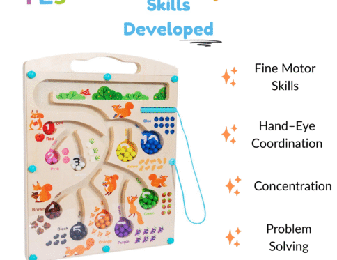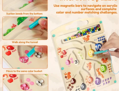 This toy is such a hit in our home! My daughter enjoys ‘feeding’ the squirrels and matching the colors. It’s both fun and educational. She has started recognizing numbers faster since we bought this game. I love that it is non-toxic and safe for daily play.