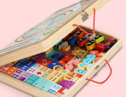 Amazing toy set! My son spends hours building tracks and creating little cities. It sparks his imagination and helps him learn teamwork when he plays with his cousins. The pieces are sturdy, and I appreciate the eco-friendly wood used