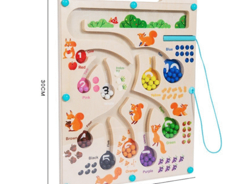 Premium Montessori Wooden Educational Magnetic Squirrel Game, Colours & Numbers Learning Toy