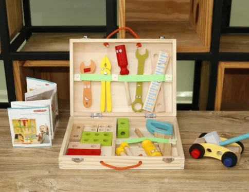 Amazing pretend play toy! My son loves fixing things around the house with her wooden tool set. It keeps her engaged while also improving her motor skills. The tools are perfectly sized for little hands, and everything fits neatly in the box, which makes it easy to store. Highly recommended for kids who enjoy role play!”