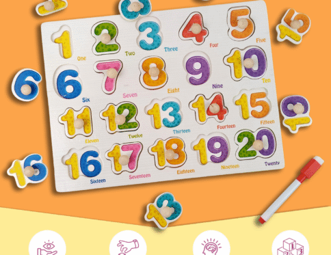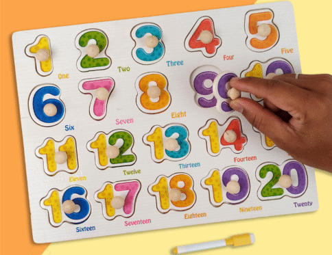 Premium Wooden Learning Knob Numbers Puzzle with White Board