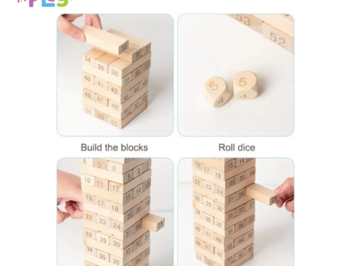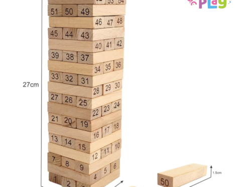 Premium Wooden Number Tumbling Tower Game | 54 Blocks with 2 Dice