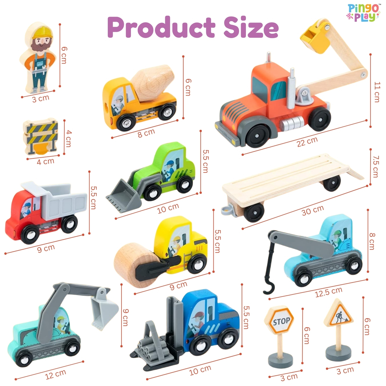This construction vehicle set is really well made. All the wooden vehicles are sturdy, colorful, and safe. My child enjoys creating different construction scenes every day.