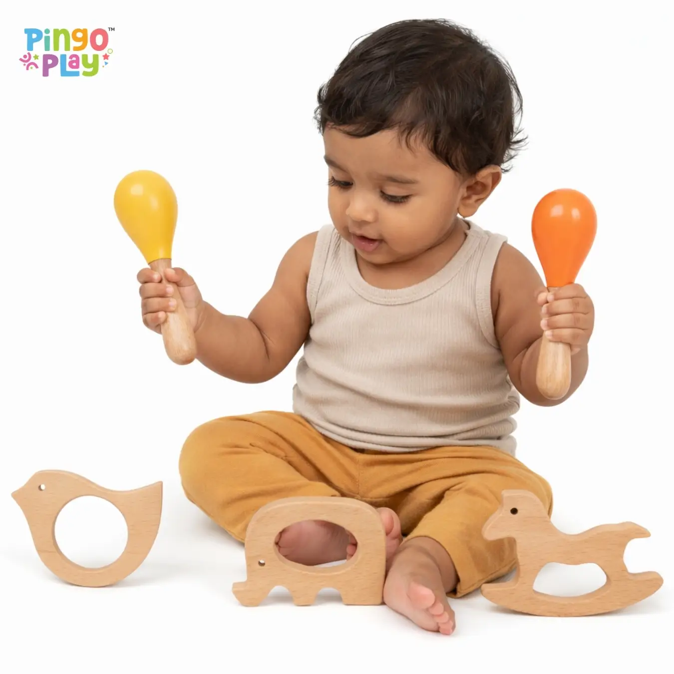 Pingo Play Wooden Maracas & Teether Combo – A Natural Way to Learn, Play & Grow!