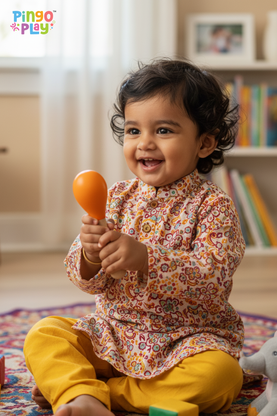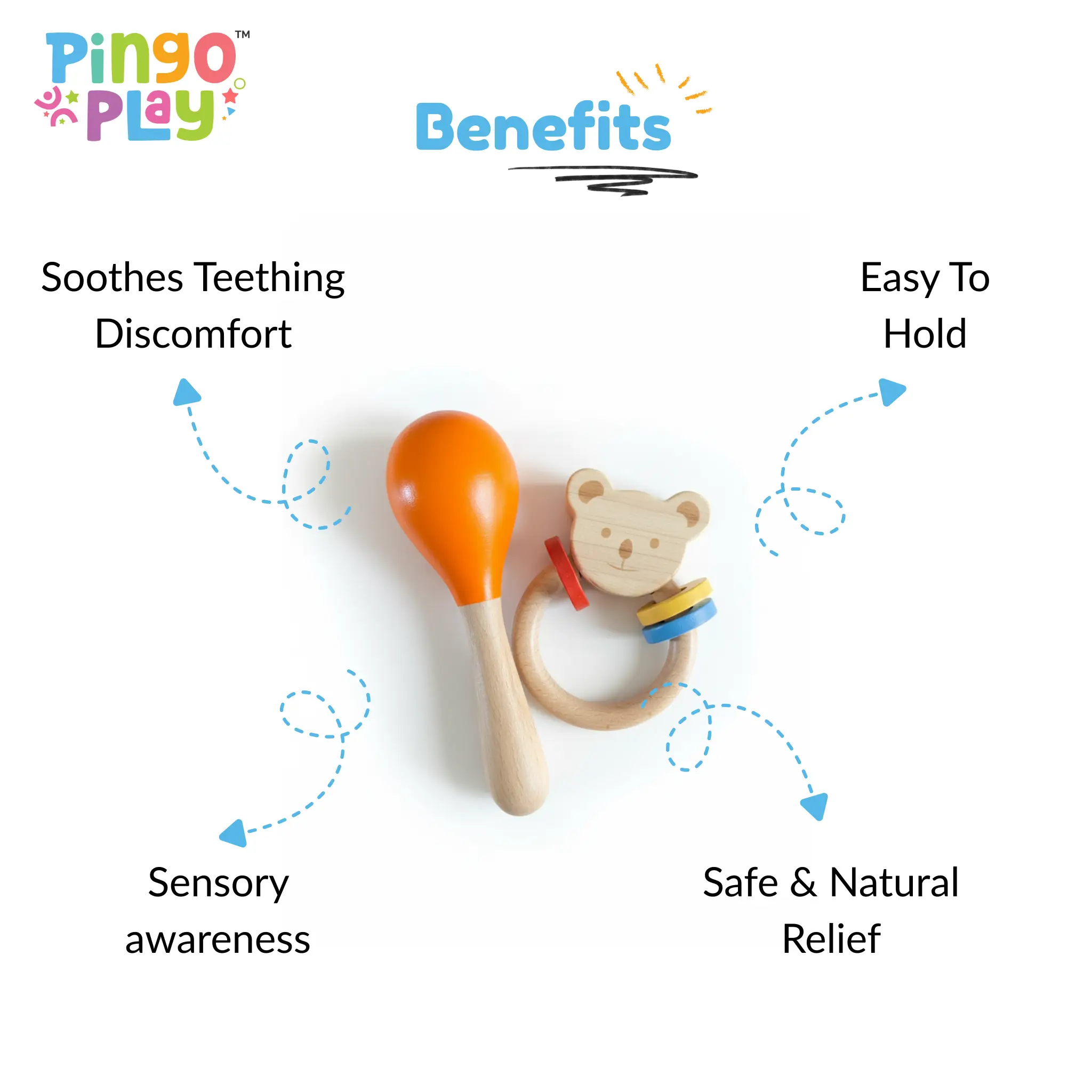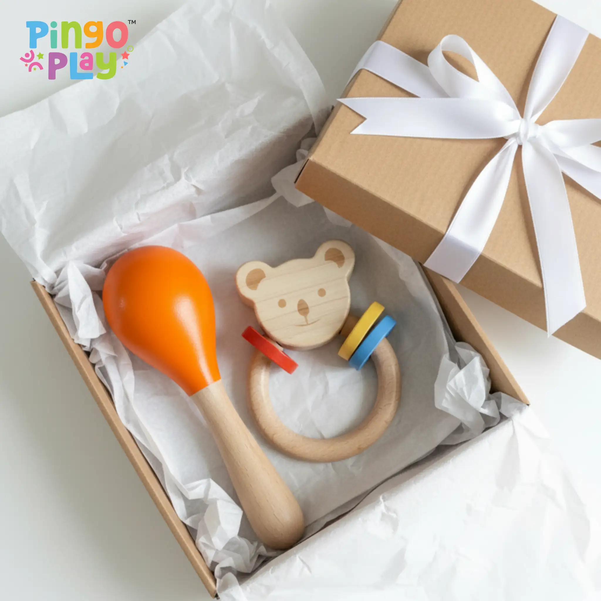 Introduce your little one to the joy of rhythm and sensory play with the Pingo Play Wooden Rattle & Maracas Combo. Thoughtfully crafted from premium beech wood and finished with non-toxic paints, this combo encourages early auditory and tactile exploration in a safe, natural way. The bear-shaped rattle engages visual curiosity and grasp reflex, while the colorful maracas add cheerful sounds to every tiny shake — making it a delightful duo for infants and toddlers.