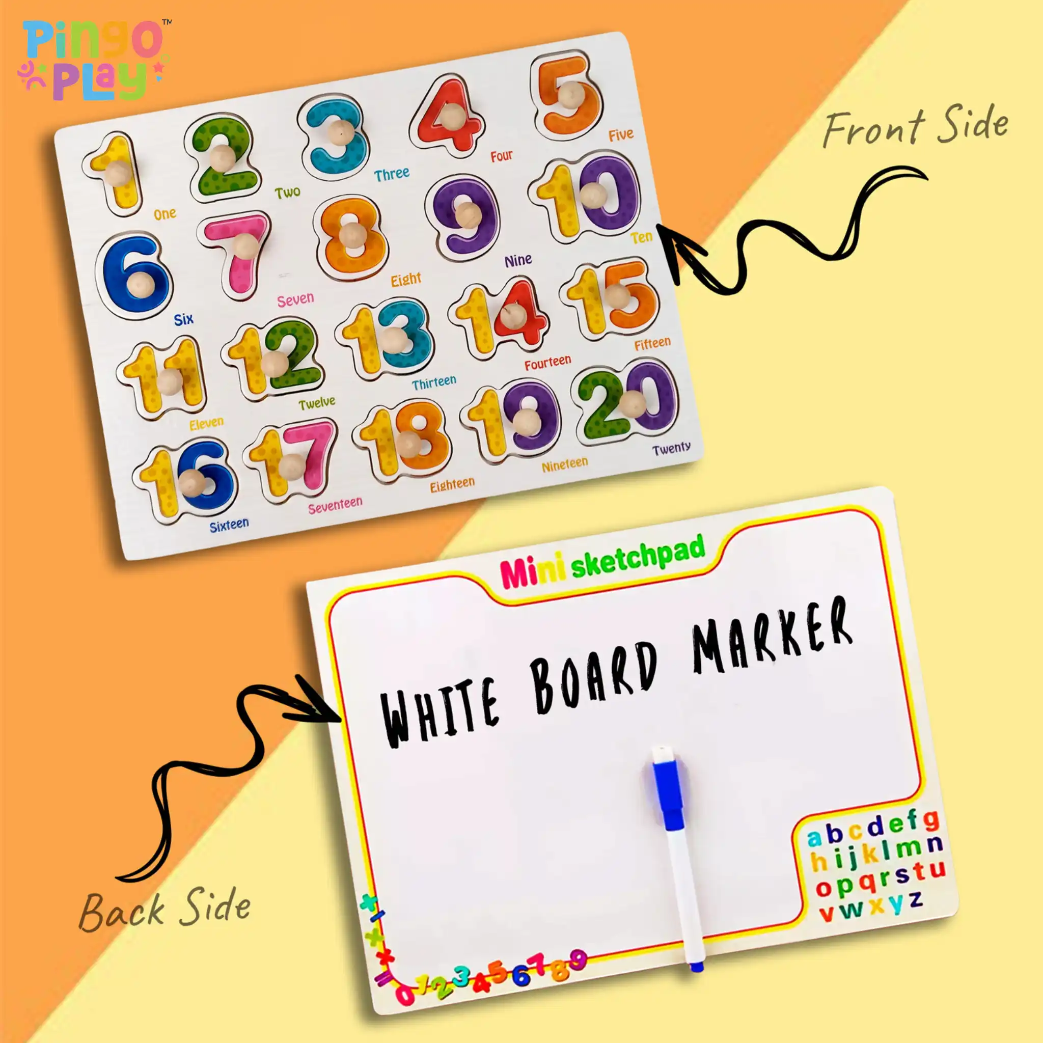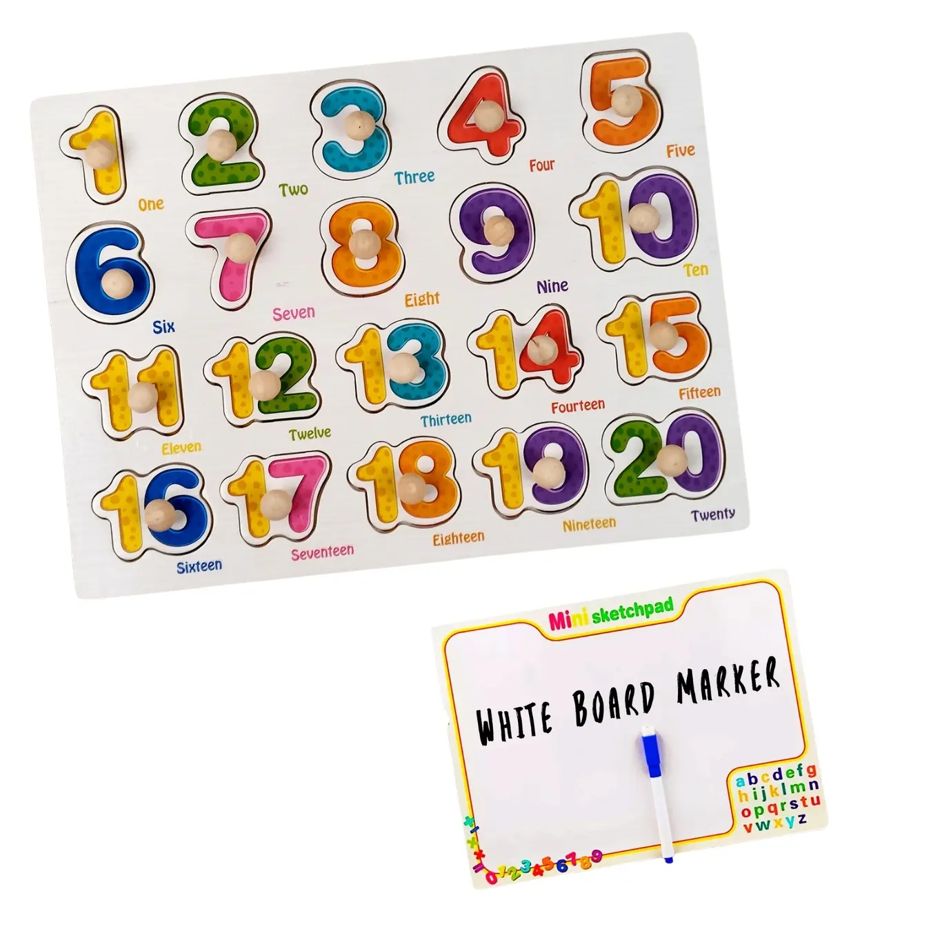 ⦁ Included Items: Wooden puzzle board with knobs (numbers 0–9), built-in magnetic whiteboard