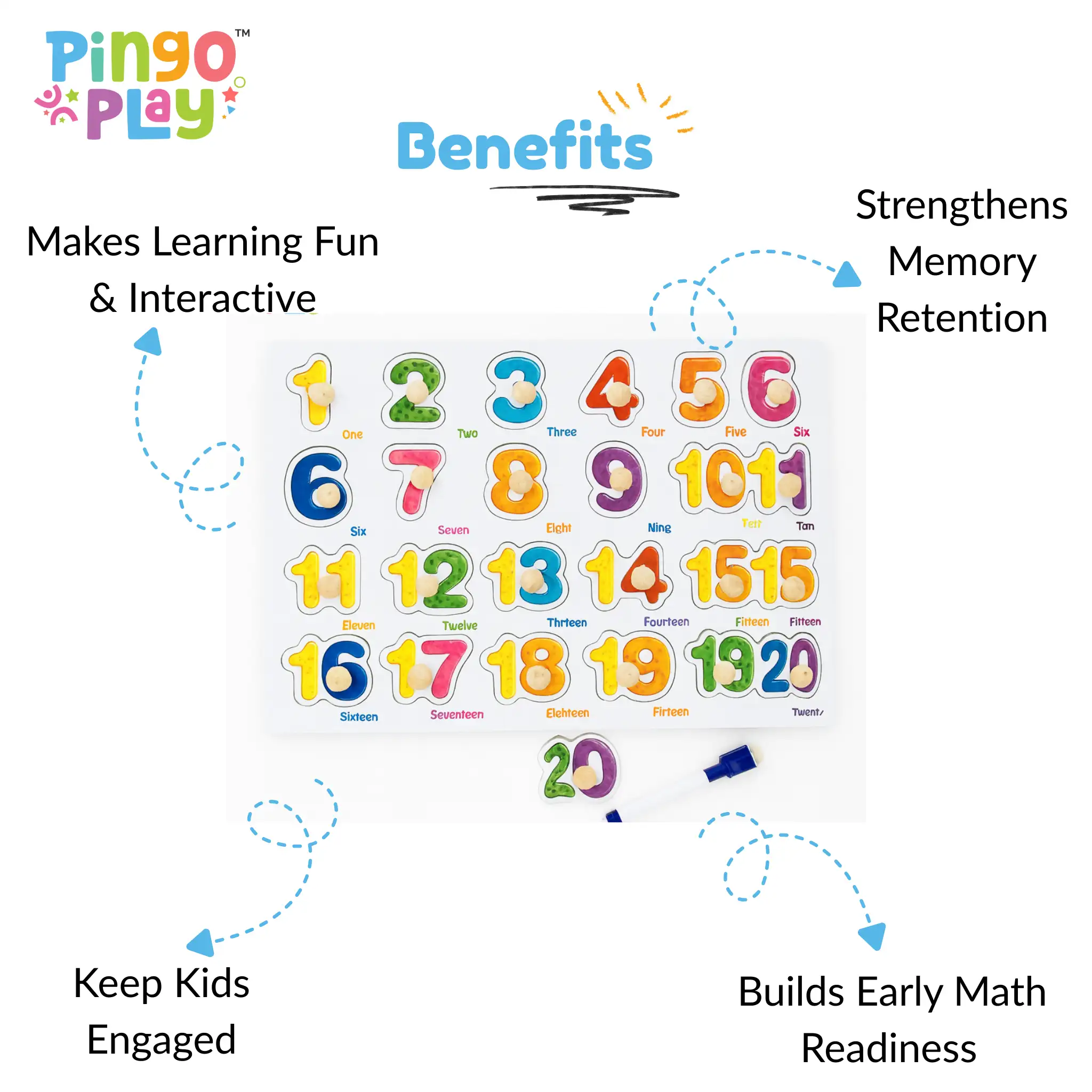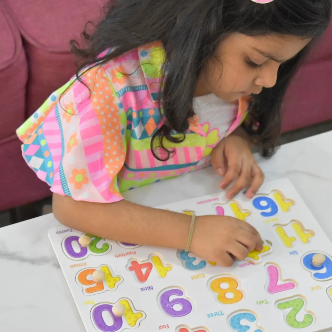 My son instantly connected with this puzzle. The bright colours and easy-grip knobs make it fun for him to learn numbers from 1 to 20. Excellent for boosting number recognition and motor skills.