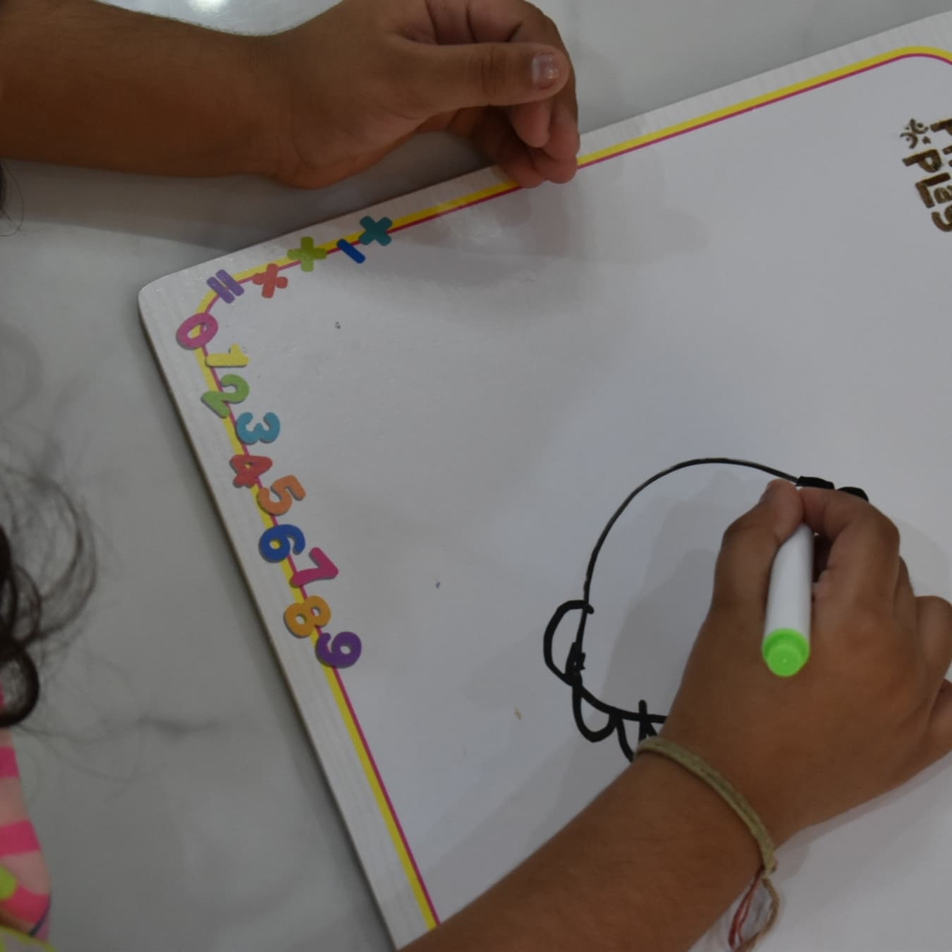 ⦁ Whiteboard Fun – Use the magnetic whiteboard to practice writing numbers, solving simple sums, or doodling.