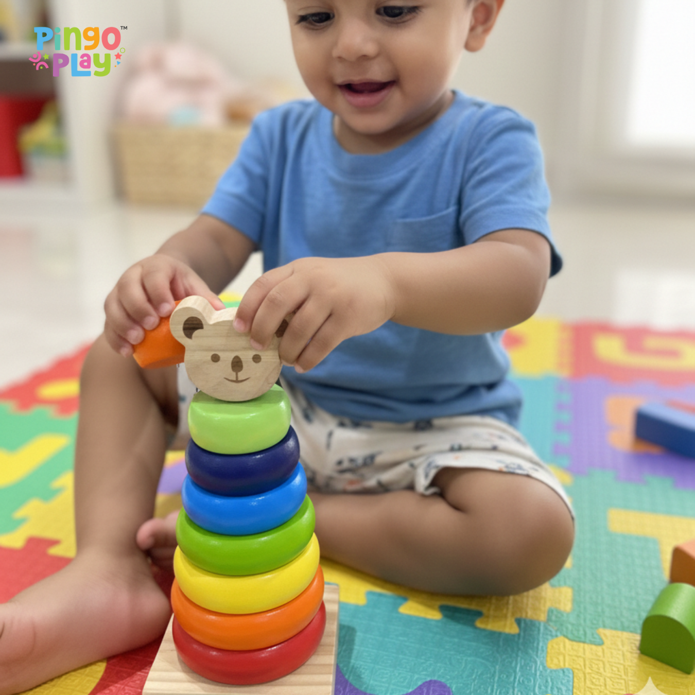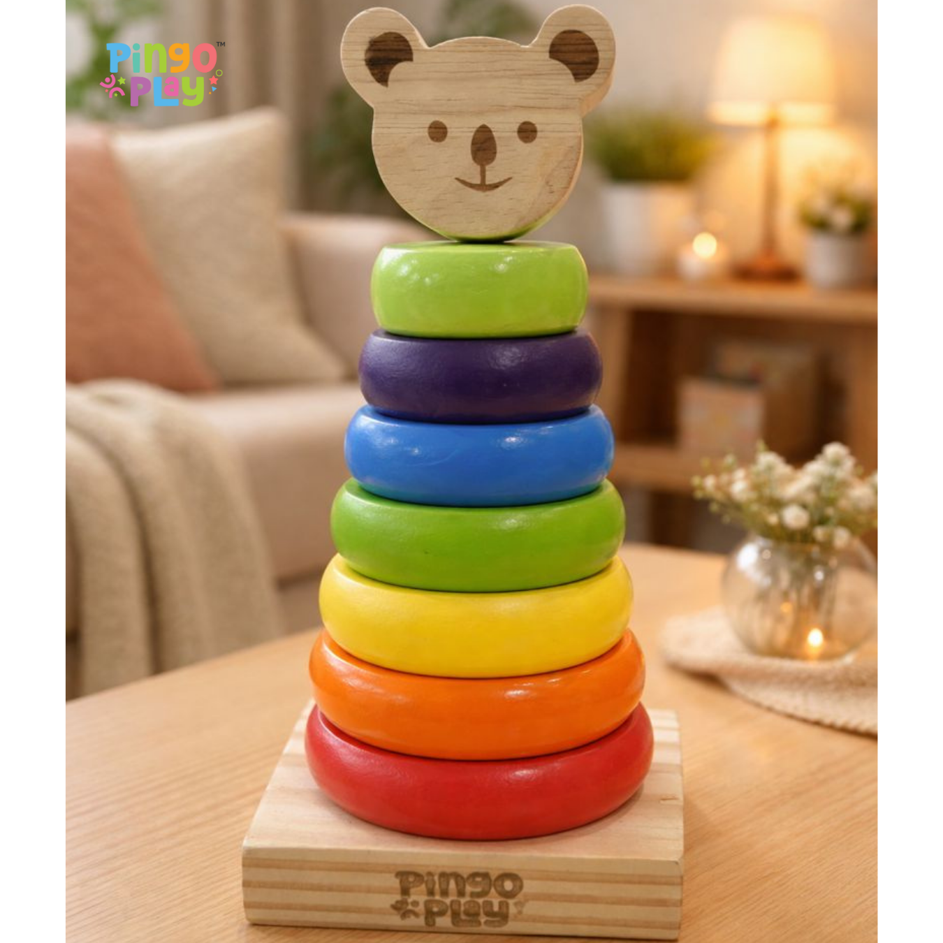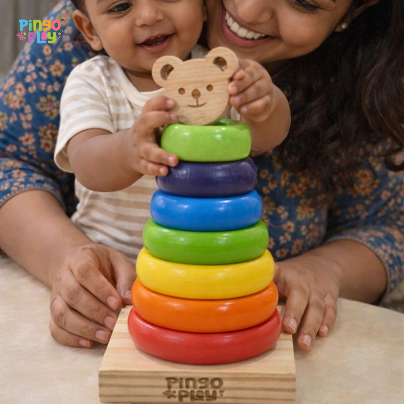 Introduce your baby to the joy of learning through play with the Pingo Play Wooden Ring Stacker. Designed for infants aged 6 months and above, this Montessori-inspired toy encourages early motor development, coordination, and problem-solving in a gentle, engaging way.